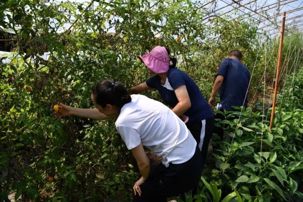 8點30分,記者與2號小園地園主陳娜相約,一起采摘蔬菜。從沒下過菜地的“小白”們,手忙腳亂也沒有陳大姐一個人摘得快。不過,在大家的共同努力下,訂單蔬菜很快就采摘完畢。帶著勝利的果實,記者和陳大姐一起趕往村里的郵政綜合便民服務站。