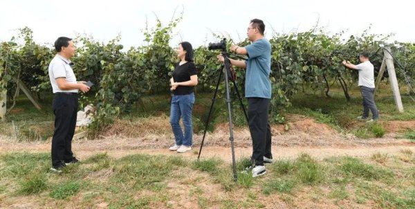 采訪組在農(nóng)戶幫助下體驗(yàn)采摘獼猴桃