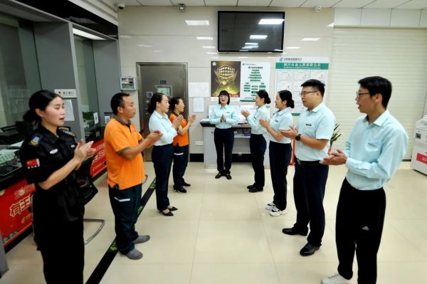 走進(jìn)蘭里支局,寬敞明亮、簡(jiǎn)潔大氣,廳內(nèi)設(shè)立了客戶等候區(qū)、VIP服務(wù)區(qū)、郵政業(yè)務(wù)區(qū)等多個(gè)功能分區(qū)。“各位優(yōu)秀的伙伴,大家早上好!”“好、很好、非常好、越來(lái)越好!”早上七點(diǎn)四十分,隨著晨會(huì)的開始,蘭里支局一天的工作便拉開了帷幕。
