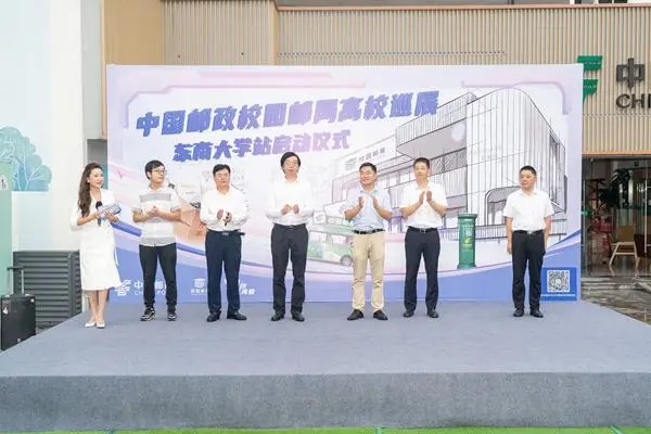 9月15日,中國郵政校園郵局高校巡展啟動儀式在東南大學校園郵局舉行。此次活動,以面向師生、服務高校為宗旨,通過“露營+城市打卡+家鄉(xiāng)農產品品鑒+郵政服務”于一體的模式,以線上直播、線下輕戶外打卡這些深受高校學子喜愛的方式,將在全國10省二十余所知名高校陸續(xù)展開。