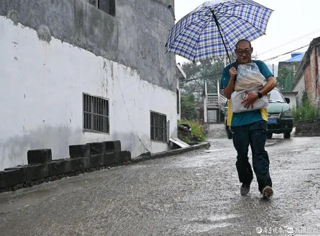 許桂明停好車,撐起傘,把郵件緊緊抱在懷里跑進村里的小路。