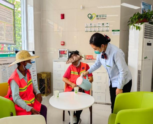 為切實履行社會責任,改善戶外勞動者喝水難、休息難等問題,今年以來,郵儲銀行連云港市分行積極響應全國總工會《金融行業(yè)開放共享服務資源 攜手關(guān)愛戶外勞動者倡議書》號召,在總、省行統(tǒng)一部署下,依托轄內(nèi)營業(yè)網(wǎng)點扎實推進“郵愛驛站”建設(shè),為交通警察、環(huán)衛(wèi)工人、建筑工人、快遞員等戶外勞動者提供志愿服務,讓“郵愛驛站”成為戶外勞動者休憩的好去處。