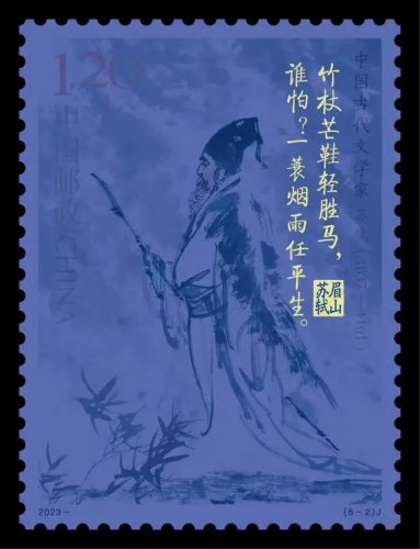 據(jù)了解,《中國古代文學家(五)》紀念郵票一套5枚,全套郵票面值6.00元。郵票計劃發(fā)行數(shù)量為740.35萬套,郵票圖案分別為歐陽修、蘇軾、李清照、陸游、辛棄疾。其中郵票第2枚就是“蘇軾”。