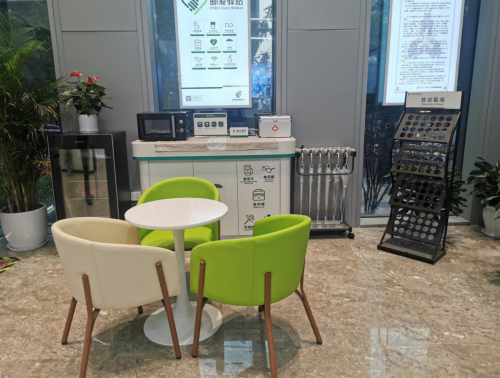 在觀音橋有一處溫暖之所,累了可以歇腳,渴了可以飲水,冬可取暖,夏可納涼,閑暇可讀書、閱報。這個“郵愛驛站”因為臨街設(shè)立,位置較為顯眼,不時會有外賣工作人員或者附近道路的車輛管理人員等抽空過來小憩,喝兩口熱水暖暖身子暖暖手,或者給手機充會兒電。驛站里放置著熱水、礦泉水、醫(yī)藥箱、消毒液等用品,供勞動者隨用隨取,小小的設(shè)施,卻大大地提高了這些勞動者的工作效率和生活質(zhì)量,也著實提高了他們的幸福感、獲得感。