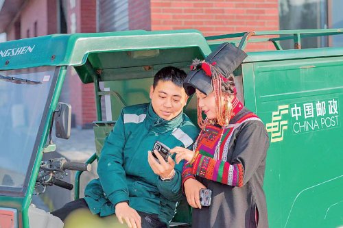 把方便路鋪進“彝家新寨”。在層層疊疊、錯落有致的“彝家新寨”里,彎彎曲曲的聯戶路上,總能看到郵政投遞員的身影。他們一大早就開始忙碌,喊著熟悉的名字:“莫舒、阿依,快出來領包裹啦!”為了第一時間將郵件送到彝族同胞手中,峨邊縣分公司結合彝村實際,采用三輪車運到大路,再由投遞員背、抱、扛到戶的投遞模式,將一件件日用品和生產用具投送到村民手中。2023年,該分公司為兩個村的村民投遞郵件近8000件。