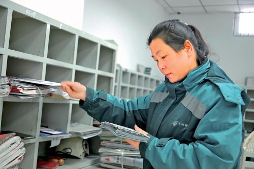 3月11日7點,田可花來到攬投部,與同事們一道,搬運、整理、分發報刊和郵件,長年累月的合作使大家很有默契。雖是初春季節,可不一會兒,田可花的臉上已經開始冒汗。