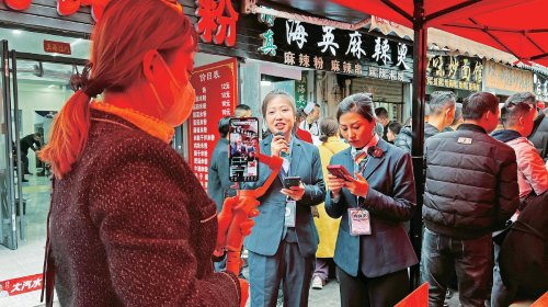 市井長巷,聚攏來是煙火,攤開來是人間?!皻g迎大家來天水,歡迎大家品嘗天水麻辣燙,游覽麥積山、伏羲廟!”在熙熙攘攘的麻辣燙攤位前,王瑞和高潔兩位身穿郵政制服的主播正在進行現場直播。