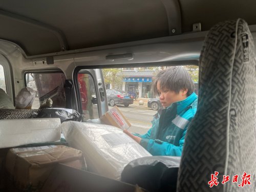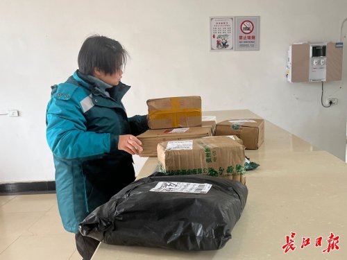 3月6日上午10時,長江日報記者乘坐黃芳蘭的面包車前往木蘭湖沿線派件。在七里沖村村郵站,老板彭四蘭見面包車停下,連忙上前幫著搬運郵件。完成入庫后,她跟黃芳蘭聊起一單狀態(tài)異常的郵件。兩人用黃陂方言溝通順暢,問題很快解決。