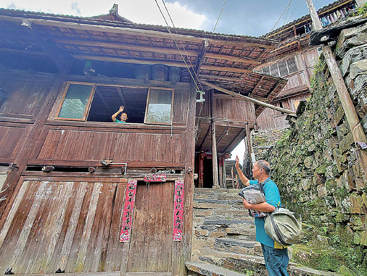 多年投遞讓張林昌和鄉親們成了親人,行之所至,總有老鄉與他熱情打招呼?! 蹴n靜樺 攝