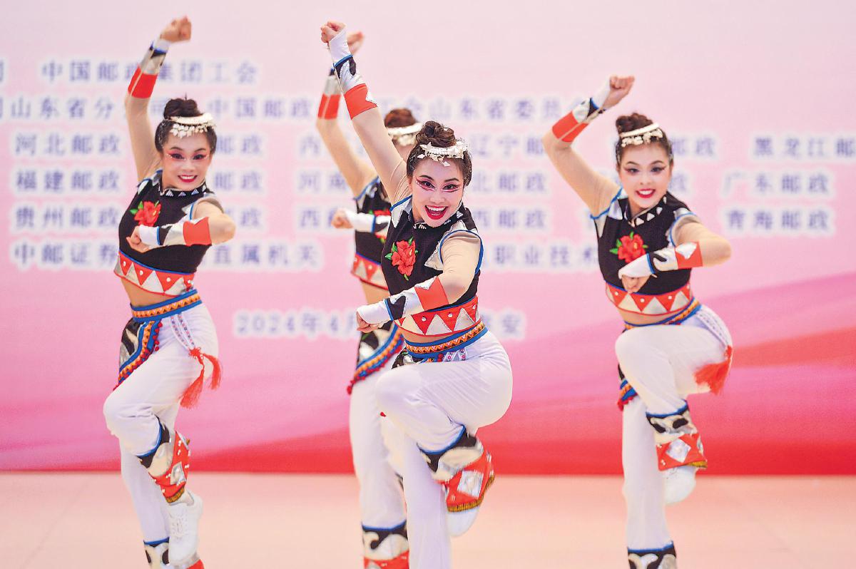 “好客山東,美美與共”。作為東道主,山東郵政代表隊的隊員們為大家獻上了熱情洋溢的表演。