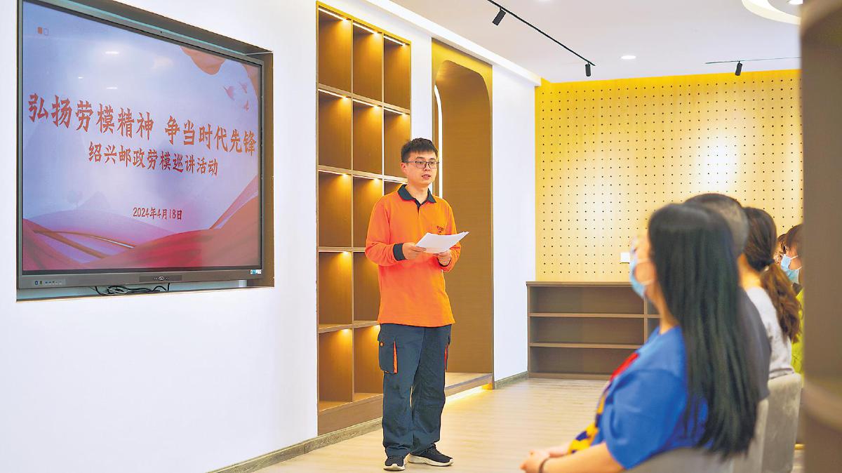 “三百六十行,行行出狀元。我們快遞小哥也可以走技能成才、技能報國之路。我們要立足崗位、立足本職、立足實踐,爭做有擔當、能吃苦、肯奮斗的新時代好青年……”4月18日,在紹興越富郵生活館,阮海良作為青年榜樣,向現場的郵政系統青年代表分享了他的成長故事,鼓勵大家奮發向上。