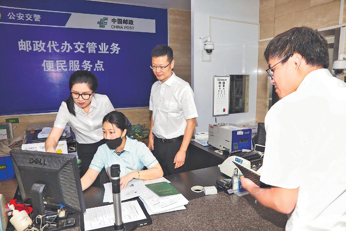 浙江省分公司渠道平臺部員工到網點指導業務辦理。□周云峰 攝