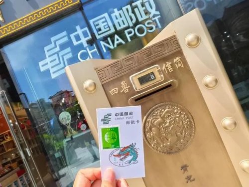 夜色里的大唐不夜城街區(qū),2021年建在這里的大唐郵驛主題郵局,因為銅質(zhì)打造四面投信的“銅匭·四獸”郵筒,顯得格外扎眼。這里作為全國首家以唐文化為主題的郵局,一款款獨具巧思的郵政產(chǎn)品——大唐特色明信片、手辦、各式章戳,2024年全國首枚生肖龍?zhí)咨幕沾恋龋瑤褪忻裼慰椭庇^了解郵驛文化,吸引大量游客前來打卡,是目前西安日接待游客量最大的主題郵局。