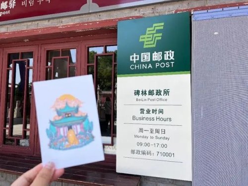 碑林郵驛主題郵局,藏身西安碑林博物館內(nèi),幾乎是西安面積最小的主題郵局,它有西安首個主題特色郵筒,碑石的形狀刻有象征吉祥的云紋。自2016年營業(yè)以來,承擔(dān)信件、包裹、匯兌、印刷品等郵政普遍服務(wù)業(yè)務(wù)的同時,集章拍照、文創(chuàng)選購……小小主題郵局“五臟俱全”。也是西安第一個主題郵局。
