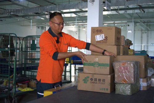 工人邊取件邊說:“只要我們把地址寫成郵件寄存點,郵車就能給我們送過來,我們又能愉快地買買買了?!?/p>