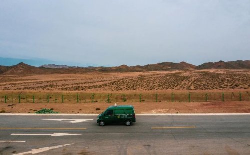 “山到頭,水到頭,路到頭,人到頭?!濒[爾吉瑪駕駛郵車,行駛兩個多小時,來到最遠的抵邊村明水村。這里位于大漠深處,人跡罕至,近百公里范圍內看不到一棵自然生長的樹,除了零星生長的麻黃草,幾乎沒有生命跡象。這里雖叫明水,卻沒有水。