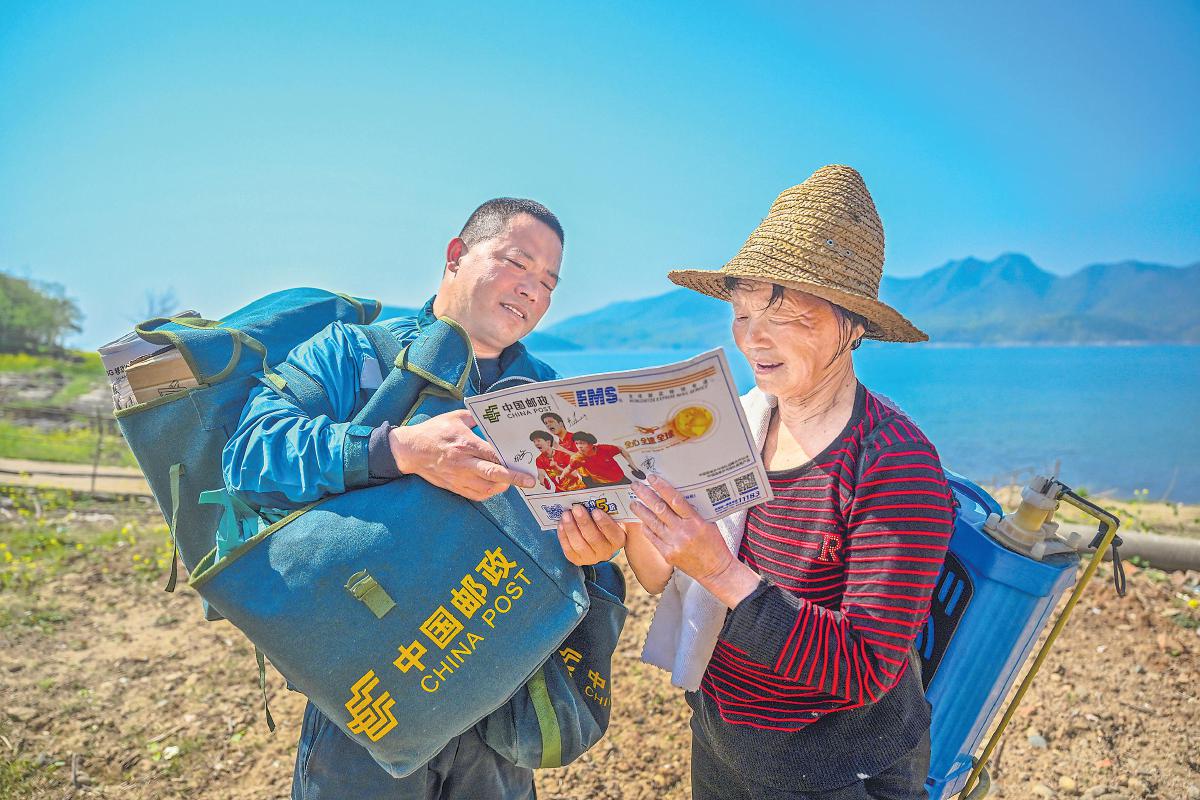村民簽收郵件。 劉力揚 攝