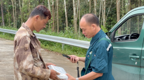 “我從2005年進(jìn)入郵政到現(xiàn)在,走過了18年,之前騎自行車、再騎摩托車,現(xiàn)在開面包車,看到了邊境村的變化。我是一名普通的投遞員,看到村民們收到郵件高興的樣子感到很開心,這體現(xiàn)了我的價(jià)值。我要繼續(xù)堅(jiān)持快樂投遞!”楊大威指了指身后的山頭說,“我工作這么多年,憑祥市的邊境村幾乎都跑遍了,山的那一邊就是越南。”