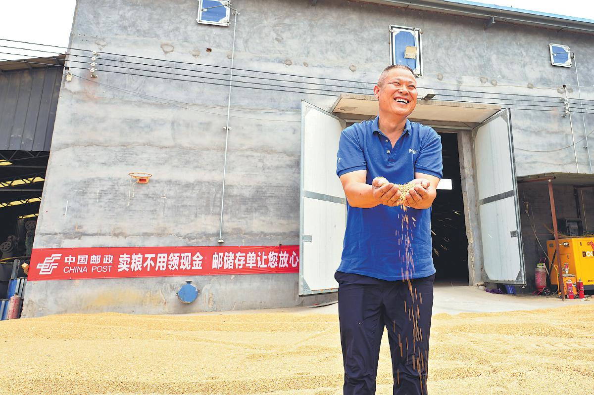 西平縣盆堯鎮于營村郵政合作收糧點負責人于成功臉上洋溢著豐收的喜悅。