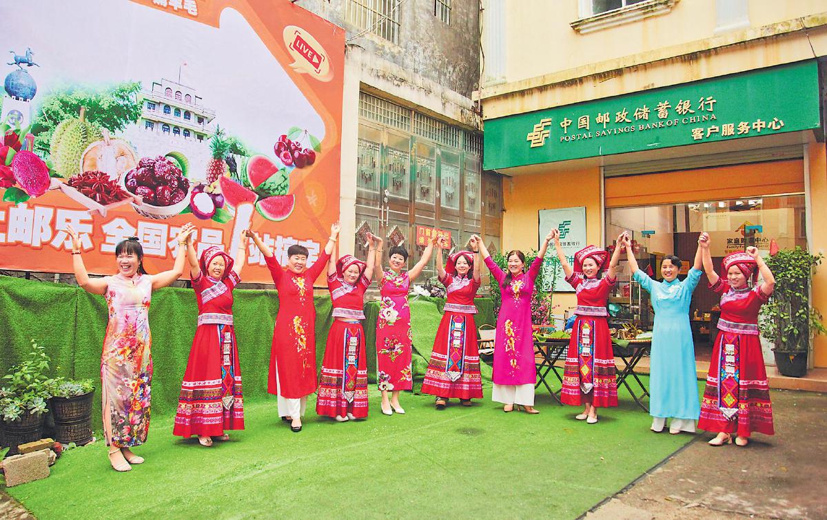 “朋友請到憑祥來,火紅的木棉為你開。這里有雄偉的友誼關,這里有富饒的邊寨,這里是祖國開放的大門……”6月5日中午,采訪組沿著友誼鎮的邊境郵路一路前行,還沒到鎮上的弄懷營業所,就聽到了陣陣歡歌笑語。