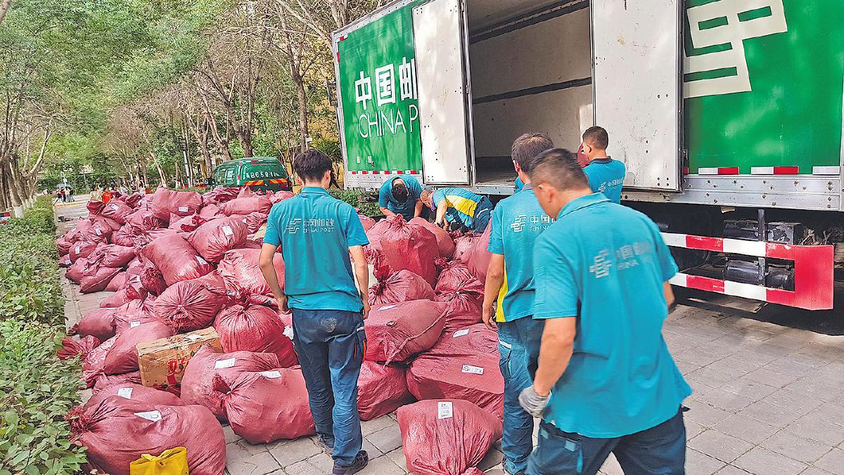 日前,為做好畢業(yè)季服務(wù)工作,新疆維吾爾自治區(qū)昌吉回族自治州郵政分公司在校園設(shè)立郵政包裹收寄點(diǎn),工作人員在清晨就開始收寄前的準(zhǔn)備工作,最大限度確保當(dāng)日攬收的校園包裹當(dāng)日發(fā)運(yùn)。優(yōu)質(zhì)的服務(wù)受到師生的廣泛贊譽(yù)。□李廣文 攝影報(bào)道