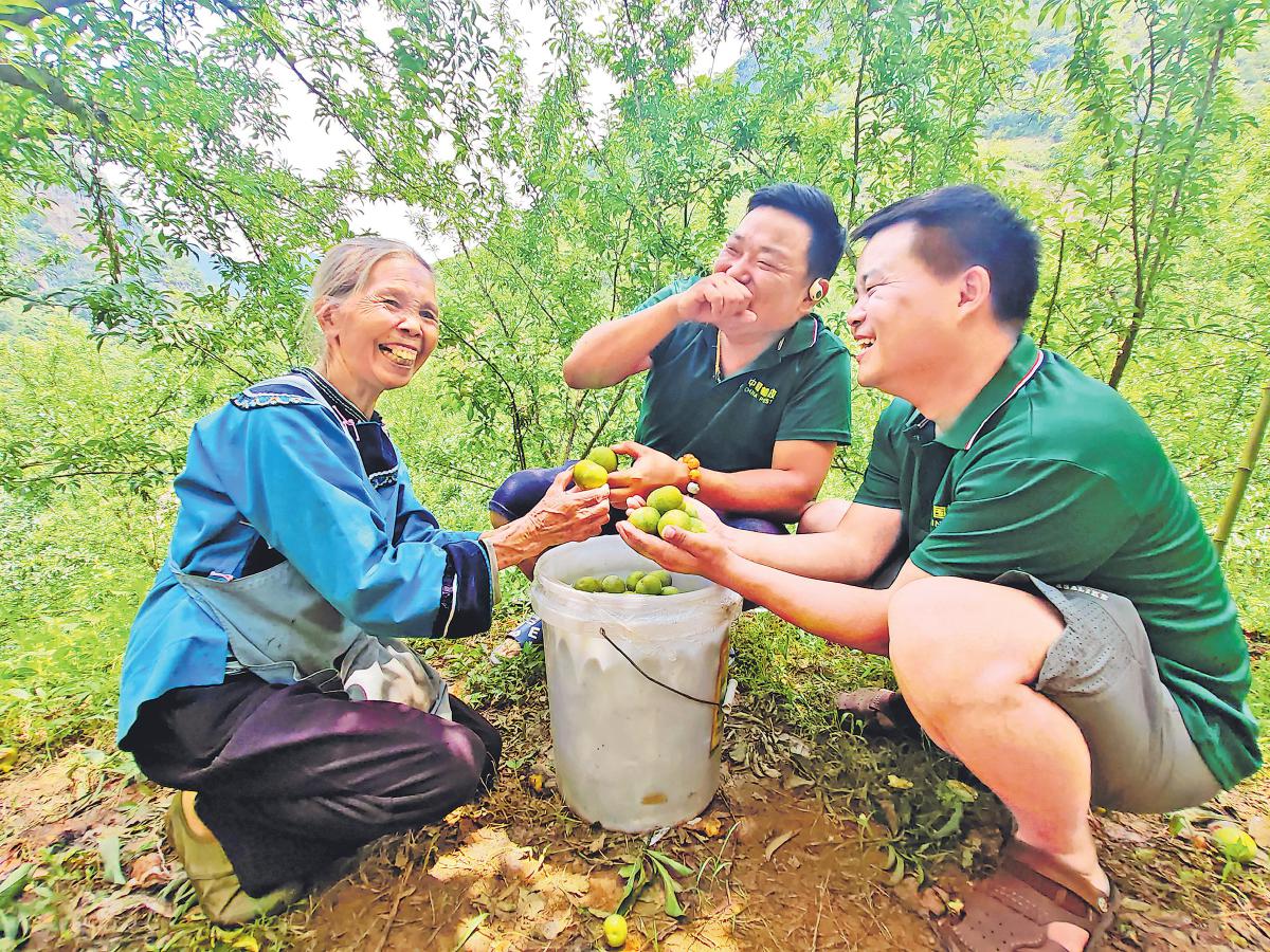 近期,貴州省安順市鎮寧縣的特色農產品蜂糖李成熟上市。貴州省郵政分公司將蜂糖李項目作為省級鄉村振興重點項目大力推進,整合郵政寄遞物流、普惠金融、農村電商綜合資源,提供銷售、寄遞、金融等全鏈條的服務支持。自6月5日蜂糖李項目啟動以來,貴州郵政在鎮寧縣各鄉鎮設置了100多個收寄服務站點。截至7月1日,共寄遞蜂糖李郵件5.7萬余件。圖為郵政工作人員幫助果農采摘蜂糖李。