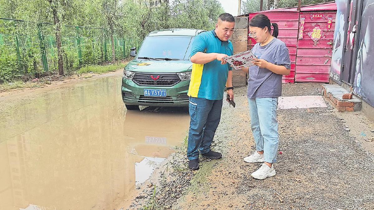 7月9日,河南省鄭州市中牟縣郵政分公司雁鳴湖支局投遞員在暴雨后,第一時間將郵件送到客戶手中?! 跖沓獭z