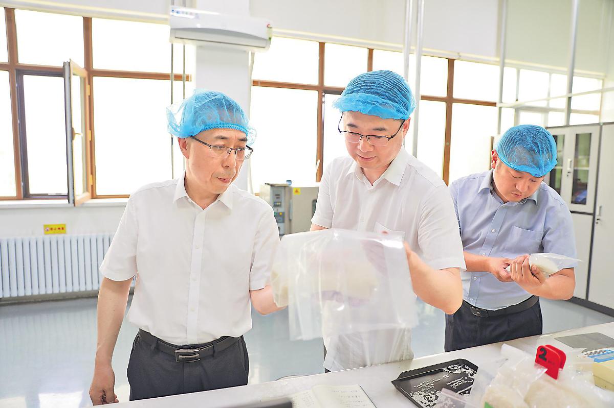 五常市支行客戶經(jīng)理(中)定期上門走訪大米加工企業(yè)。