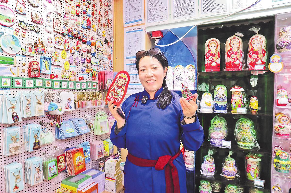 “國門邊居然還有郵局,太神奇了!快幫我拍張照!”在國門景區(qū)的入口處,占地200多平方米的滿洲里國門主題郵局吸引了不少游客。跟隨游客的腳步進(jìn)入主題郵局,分布有序的各個(gè)功能區(qū)都擠滿了人。“這是我們的爆款——國門冰箱貼,琺瑯工藝,火車還可以自由活動(dòng)……”記者看到,沒等郵局工作人員介紹完,幾位游客已經(jīng)快速買下好幾樣文創(chuàng)產(chǎn)品。國門主題郵局負(fù)責(zé)人項(xiàng)欣介紹說:“我們主題郵局里有郵品、文創(chuàng)產(chǎn)品、特色食品等500多種,以國門為主題的文創(chuàng)產(chǎn)品和鄂溫克族手工藝品都非常受游客喜愛。”