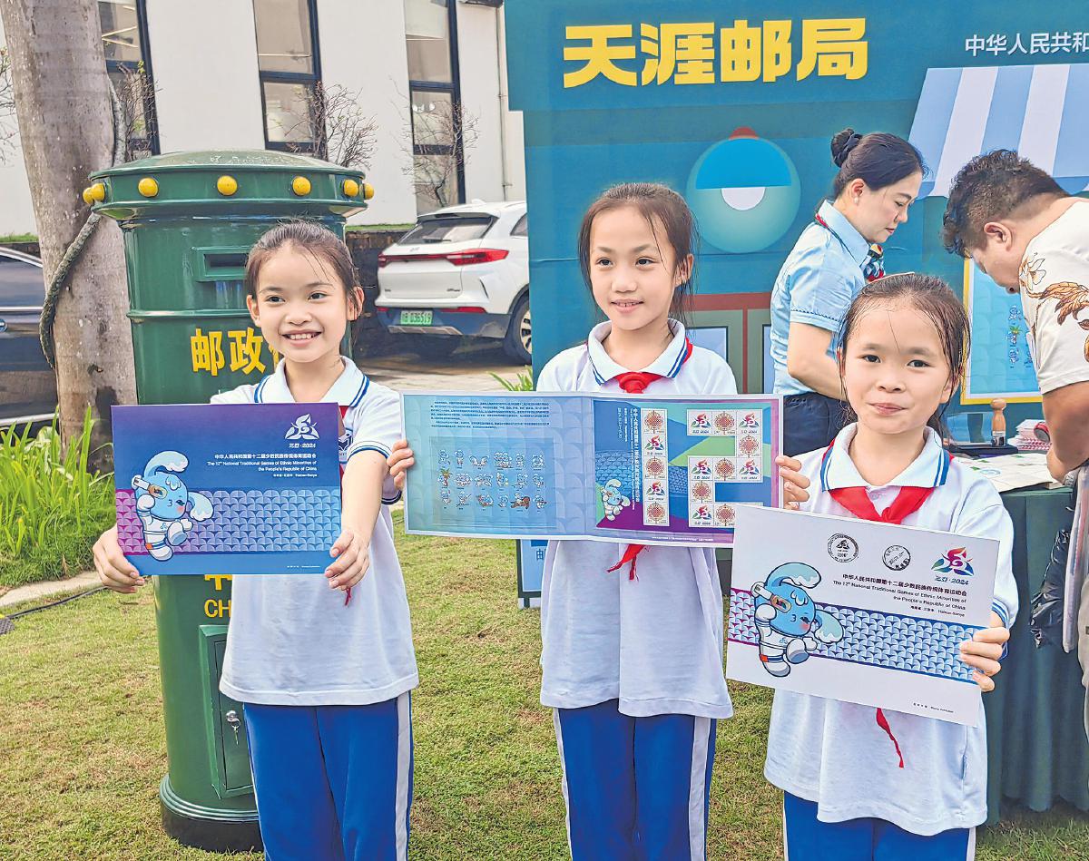 8月14日,第十二屆全國少數(shù)民族傳統(tǒng)體育運動會倒計時100天誓師大會在海南省三亞市舉行。當(dāng)天,第十二屆民運會倒計時100天紀念郵折首發(fā)。
