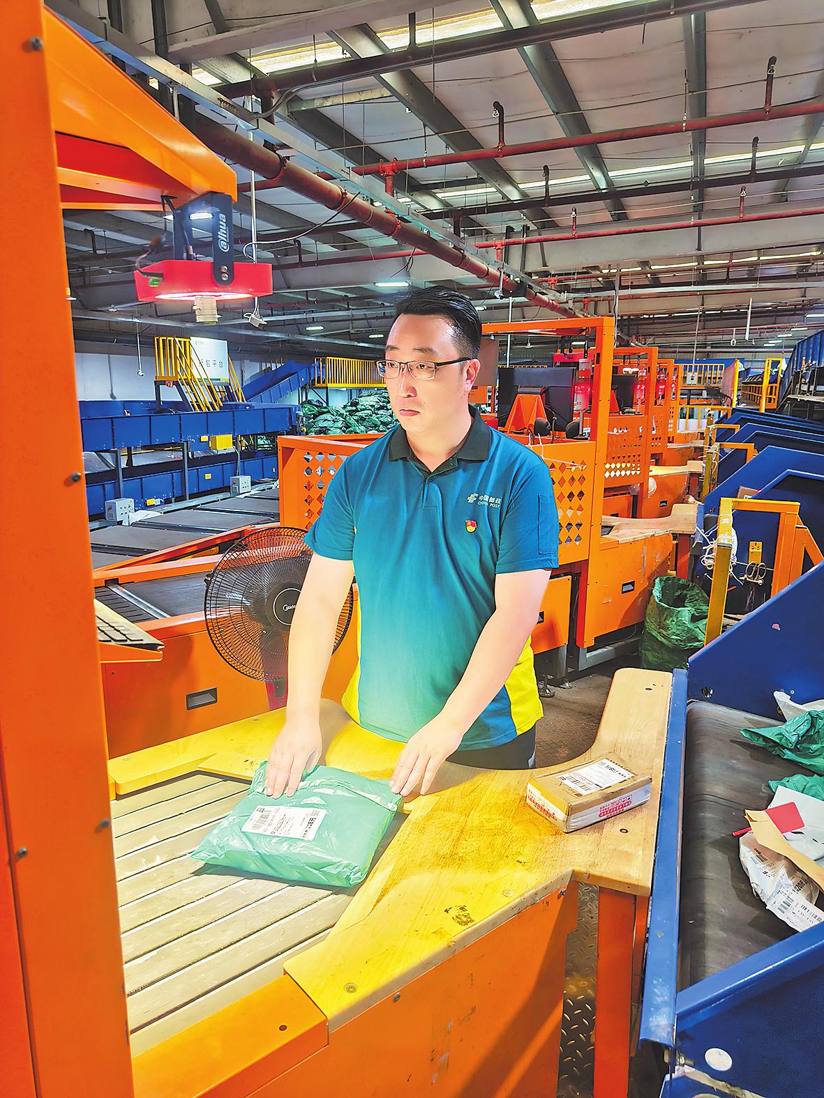 沖鋒在前,彰顯黨員本色。紀亮時刻牢記自己的第一身份是黨員。每逢“618”和“雙11”電商大促,他就把自己“釘”在郵件作業的生產一線,兩三周連軸轉在現場指揮,及時解決各類突發問題,即使忙到腳底磨出大血泡也從不吭聲。連續8年,紀亮與團隊不斷刷新作業點的日峰值紀錄。2023年,洞涇包件處理班組全年處理量同比提升36%;粗分矩陣及小件機的設備效能均達到全國郵政領先水平,進入集團“快鹿榜”;班組人效指標更是突破了2300件/天,遠超額定指標。