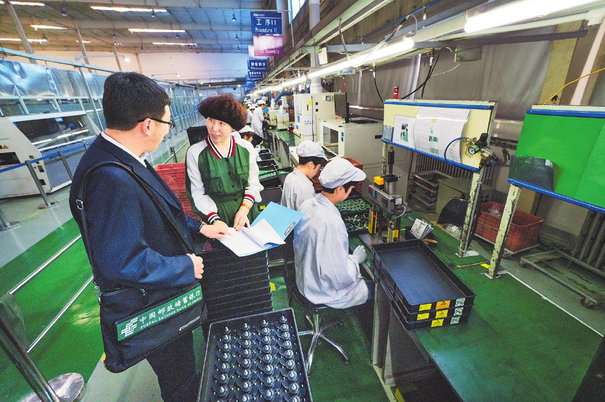 黑龍江省分行客戶經(jīng)理來(lái)到貸款客戶企業(yè)做貸后調(diào)查。