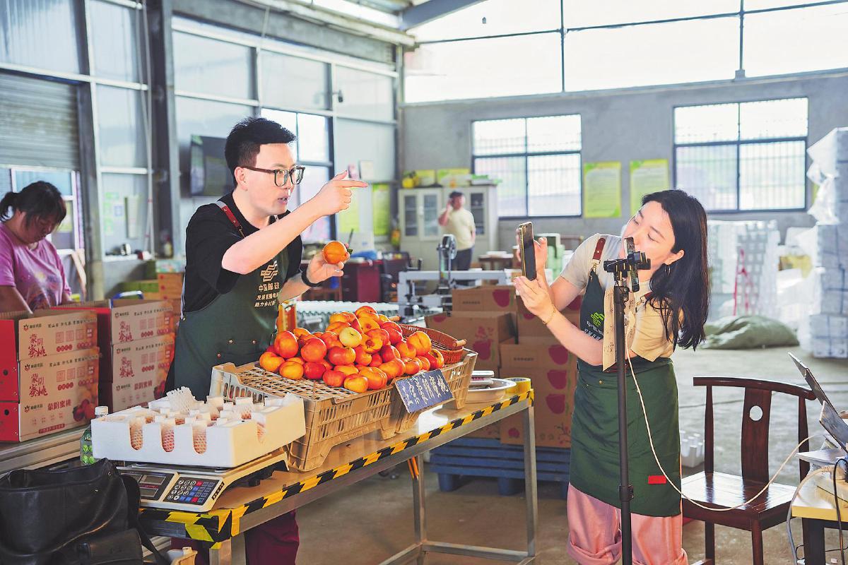 山東蒙陰被譽為“中國蜜桃之都”,其位于北緯35度的黃金水果帶,孕育出了享譽全國的蒙陰蜜桃。借助今年“919”郵政農品節,臨沂市郵政分公司充分發揮協同優勢,將產自紅色沂蒙山的蒙陰蜜桃作為助力鄉村振興的重點項目來推動,通過助農直播、專項營銷,讓蒙陰蜜桃走出山村、走向全國。“今天給大家推薦的是蒙陰黃金蟠桃,現摘現發,主打一個新鮮……”在臨沂市分公司的網絡直播間,主播賣力吆喝,網友下單不斷。借助電商直播的熱潮,臨沂市分公司積極發展直播電商,布局線上渠道和直播帶貨資源。7月初正值蟠桃上市的季節,也是蒙陰蜜桃最為熱銷的季節。臨沂市分公司抽調郵政業務部、寄遞事業部、直播團隊的人員組成溯源直播小組,對接合作社、種植戶,開展選品組品工作,做好產品上架、宣傳;同時,與市文旅局聯合開展直播推廣活動,宣傳視頻播放量超200萬次。經過預熱造勢,直播當天,短短1小時就銷售蜜桃4000余單。今年以來,臨沂郵政直播團隊累計銷售蒙陰蜜桃10萬單,銷售額達260萬元。“919”郵政農品節期間,臨沂市分公司選擇“金皇后”黃桃為主打產品,搭配秋月梨,創新推出“桃梨滿天下”禮盒,圍繞教師節、中秋節開展線上推廣與銷售活動。清晨6點,在蒙陰蜜桃郵政倉儲配送中心,桃農已經開始了一天的勞作。他們將采摘的桃子進行摘袋、挑選,郵政工作人員則忙著裝箱、打包、發貨。“與郵政合作后,我們的桃子都是根據訂單現采現裝。郵政當天就會把桃子運走,無須存放,這可省去了我們很多麻煩!”蒙陰云蒙莊怡生態農業專業合作社負責人侯克生高興地說。