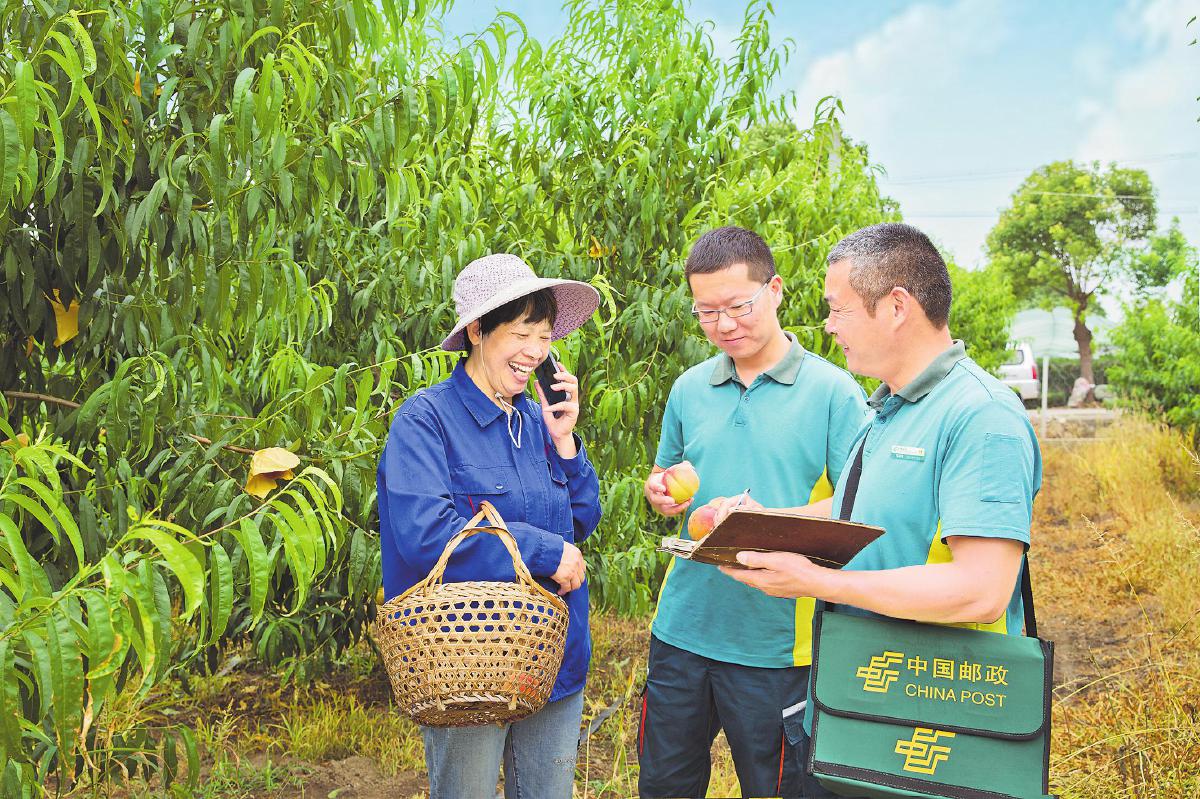 “無論是贈(zèng)送套袋還是幫忙打包水蜜桃,我們對(duì)城南郵政的服務(wù)都很滿意,一定會(huì)和郵政保持長期深度合作。”在陽湖水蜜桃核心示范基地,常州市武進(jìn)區(qū)果品協(xié)會(huì)副會(huì)長吳小偉這樣評(píng)價(jià)城南郵政,“我們員工的開卡和代發(fā)工資都是在郵政辦的,果農(nóng)有貸款需求,我們也是首推郵政。”在剛剛過去的水蜜桃豐收季,城南區(qū)分公司黨總支與武進(jìn)區(qū)農(nóng)業(yè)農(nóng)村局黨組、果品協(xié)會(huì)簽訂黨建共建協(xié)議,以“一業(yè)一策”為陽湖果品提升品牌競(jìng)爭力提供郵政服務(wù)方案,開展“郵政助農(nóng)行動(dòng)”,為陽湖水蜜桃核心示范基地及果品協(xié)會(huì)會(huì)員果園發(fā)放400萬只套袋,大大提高了本季水蜜桃品質(zhì)與完好率。同時(shí),該分公司組織下轄支局陸續(xù)開展8場(chǎng)郵政惠農(nóng)日活動(dòng),通過舉辦支局展銷會(huì)、進(jìn)社區(qū)試吃水果等,助力果品銷售,受益果農(nóng)超300戶。