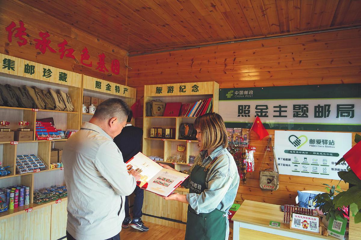 今年國慶長假期間,位于陜西省銅川市的紅色照金主題郵局開展了“慶祝新中國成立75周年”集郵文化產品展銷活動,受到廣大游客和集郵愛好者稱贊。10月1日當天,郵迷張先生來到主題郵局,連連稱贊道:“在舉國歡慶新中國成立75周年之際,在主題郵局購買這些紅色主題郵品,頗具紀念意義!祝愿我們偉大的祖國越來越好,越來越強!”從河南專程來到陜甘邊革命根據地旅游的孫先生給孩子購買了幾枚明信片。他深有感觸地說:“主題郵局里的這些文創產品,可以幫助孩子們更好地了解中國革命史,很有教育意義!”