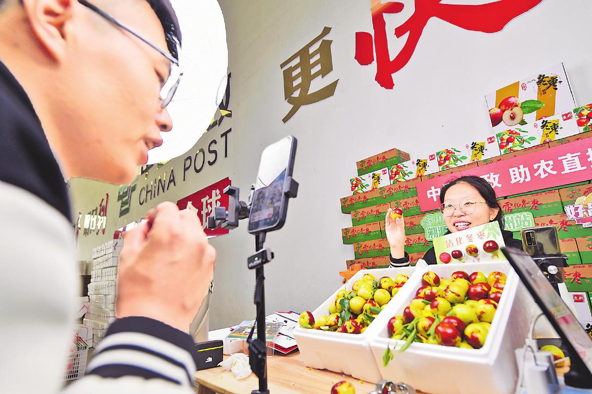 10月16日,山東省濱州市郵政分公司直播團(tuán)隊(duì)來到沾化區(qū)下洼鎮(zhèn)大下洼村開展助農(nóng)直播,銷售冬棗近3000單。自9月沾化冬棗上市以來,濱州郵政直播團(tuán)隊(duì)深入棗園、倉庫開展實(shí)地直播300余場,助力棗農(nóng)銷售冬棗50萬余斤。同時(shí),他們聯(lián)合下洼鎮(zhèn)政府推出“鎮(zhèn)長帶您郵棗鄉(xiāng)”系列視頻宣傳,助力打造沾化冬棗品牌,帶動(dòng)鄉(xiāng)村旅游建設(shè),受到當(dāng)?shù)卣暮迷u(píng)。