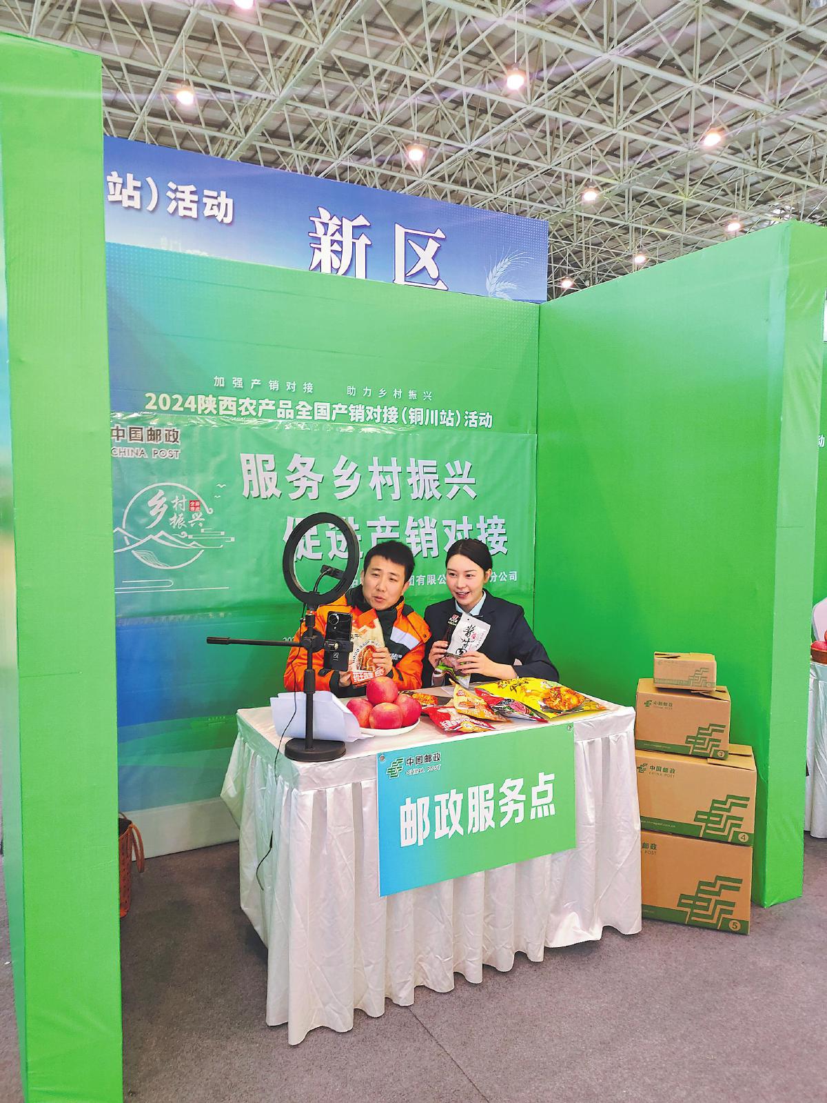 11月20日至22日,由陜西省商務廳、中國蔬菜流通協會和銅川市政府主辦的“2024陜西農產品全國產銷對接(銅川站)活動”在銅川市舉辦。銅川市郵政分公司以“加強產銷對接助力鄉村振興”為主題,成立了服務農產品全國產銷對接活動小組,現場設置郵政服務點,并通過郵樂直播推介銅川蘋果、醬牛肉、椒麻雞等特色農產品,得到地方政府及相關部門的稱贊。
