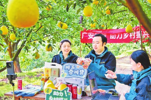 11月28日下午2點,采訪組前往廣安市廣安區龍安鄉群策村,彼時果園柚香四溢,一顆顆沉甸甸的龍安柚掛滿枝頭。廣安市郵政分公司渠道平臺部經理熊秀蘭說,從龍安柚上市到11月28日,通過郵政線上直播渠道已銷售龍安柚11330件。