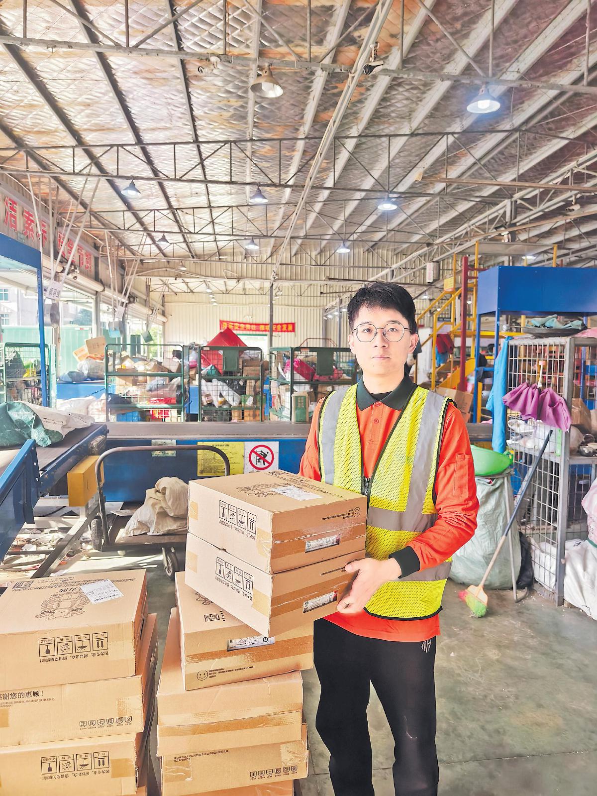 鄭龍凱幫客戶打包好即將寄遞的物品。