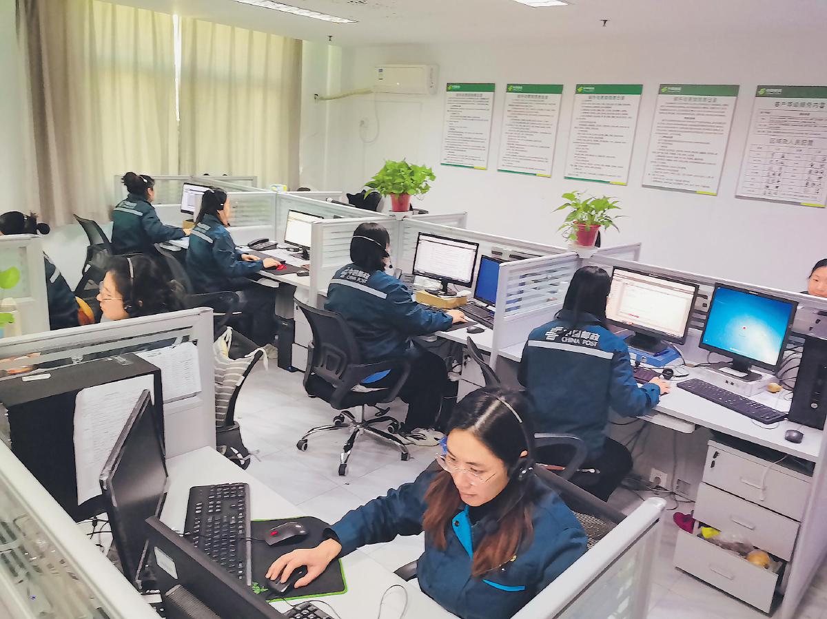 石家莊快包部客服中心全員嚴陣以待應戰(zhàn)旺季。□吳海玲 攝