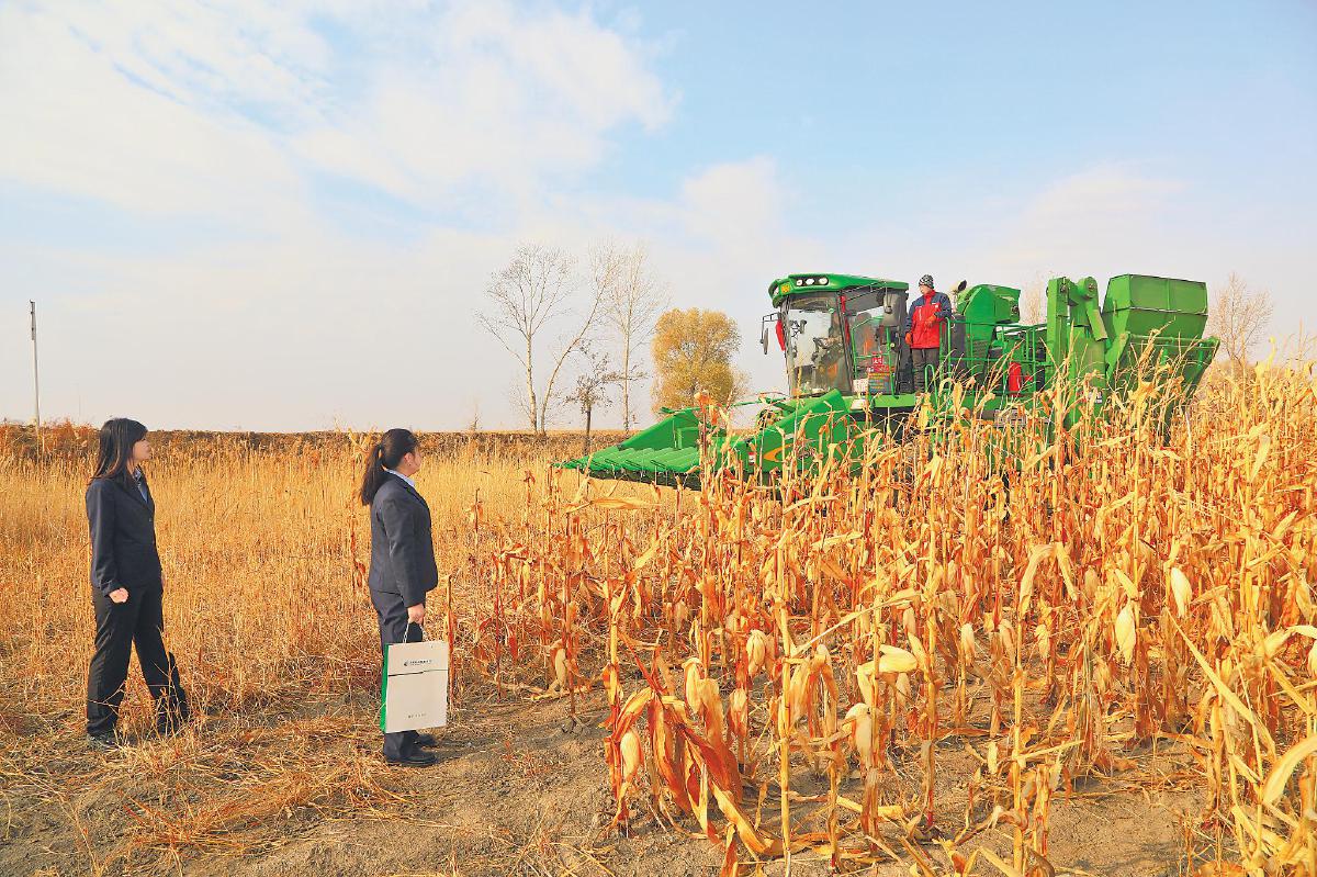 黑龍江省分行金融服務小隊走訪種植大戶,了解秋收情況。