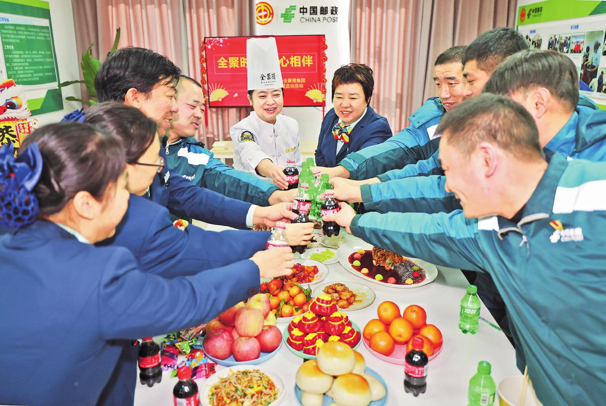 1月20日,北京郵政聯(lián)手全聚德集團(tuán)共同啟動暖心飯送基層活動。啟動活動在東四郵政支局舉行,全聚德集團(tuán)特別安排了曾獲“全國五一勞動獎?wù)隆薄笆锥紕趧营務(wù)隆钡膹N師現(xiàn)場展示拿手菜技藝絕活,贏得了郵政員工的陣陣掌聲。大家還圍坐在一起聊家常、話新春。據(jù)悉,從1月21日開始,全聚德年夜飯禮盒和豐澤園主食禮盒將陸續(xù)配送到北京各郵政網(wǎng)點(diǎn),為一線員工送上來自企業(yè)的新春祝福與關(guān)愛。
