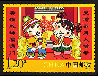 2015年1月10日,中國郵政發(fā)行了第一枚《拜年》特種郵票。