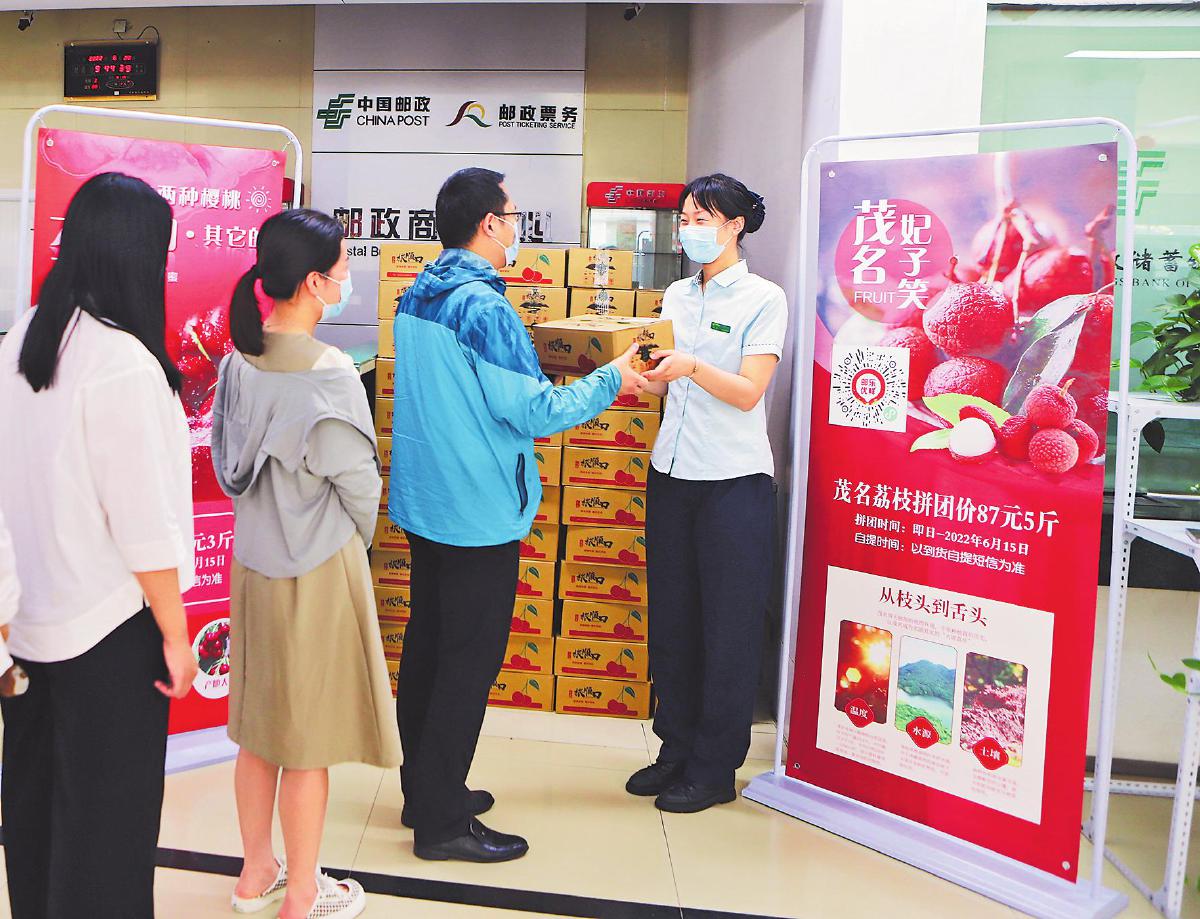 江蘇郵政與廣東郵政茂名荔枝基地合作,開(kāi)展網(wǎng)點(diǎn)拼團(tuán)活動(dòng)。