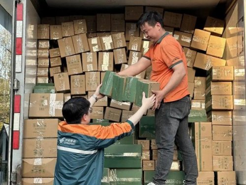 這段時間里,郵政快遞小哥們也很拼,他們要進場駐點收寄,還要檢查每一個包裹并貼上標簽。直到夜幕降臨,滿載著春茶的郵車才會駛離茶園。