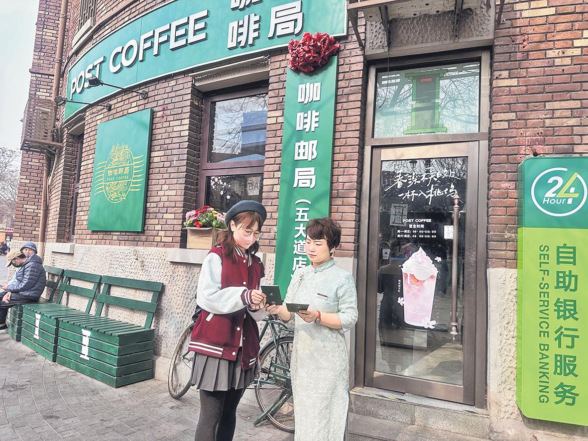 相較于改造前,集金融業(yè)務(wù)與國風(fēng)體驗(yàn)等功能于一體的特色支行引流效果明顯。“自國風(fēng)特色支行開業(yè)以來,不少年輕人慕名而來,這對網(wǎng)點(diǎn)吸引年輕客群幫助很大。同時,為配合網(wǎng)點(diǎn)的裝飾風(fēng)格,每月9日、19日、29日,支行所有女員工都會身穿旗袍上班,客戶都說仿佛一秒穿越到了民國。”馮靜介紹道。每年4月“五大道”景區(qū)的海棠花節(jié),是民園支行最“出圈”的時候。2024年海棠花節(jié)期間,民園支行被官方納入Citywalk打卡點(diǎn)。該支行為客戶準(zhǔn)備了旗袍、限定款印章,并提供拍照服務(wù),僅6天就開立數(shù)幣錢包4000余個。“今年的海棠花節(jié)馬上又要開始了,我們已經(jīng)在準(zhǔn)備了!”馮靜充滿期待地說。
