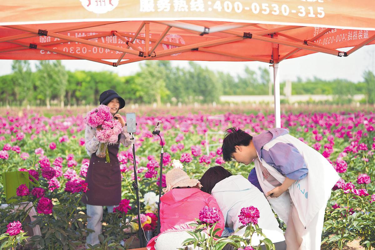 菏澤郵政直播團(tuán)隊(duì)走進(jìn)種植基地,開(kāi)展芍藥鮮切花直播。 □趙現(xiàn)萌 攝