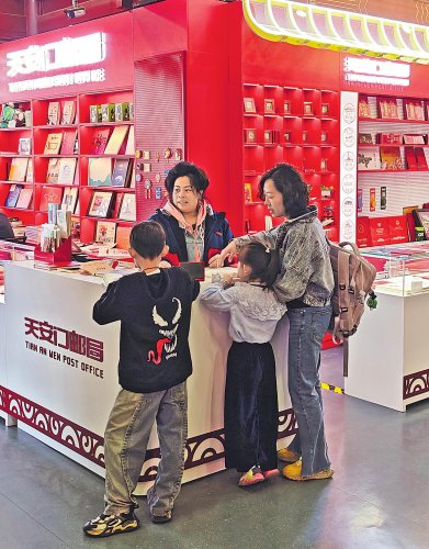 中國國家博物館主題郵局內陳列著以國博館藏為靈感的豐富郵品,游客可以用不同文物主題的郵戳蓋章留念,感受集郵文化的獨特魅力。