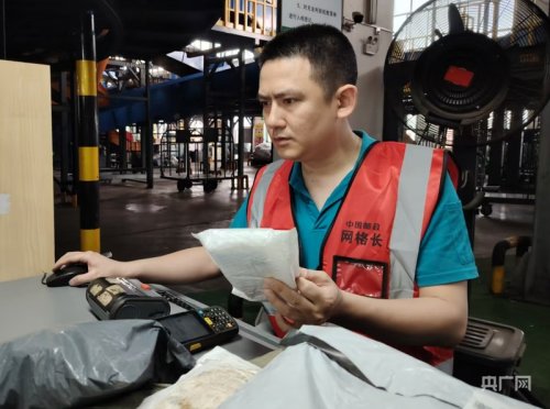 毛自學在海口國際郵件交換站處理國際郵件(央廣網(wǎng)記者 付美斌 攝)