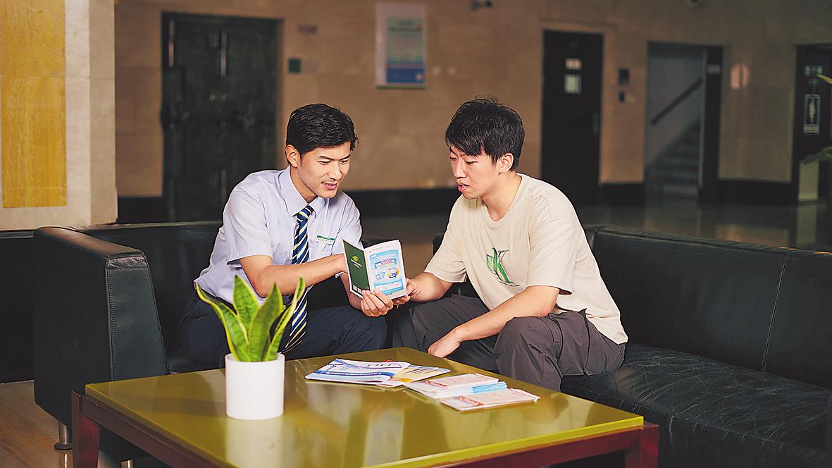 黃浦區支行營業部理財經理為客戶介紹理財產品。